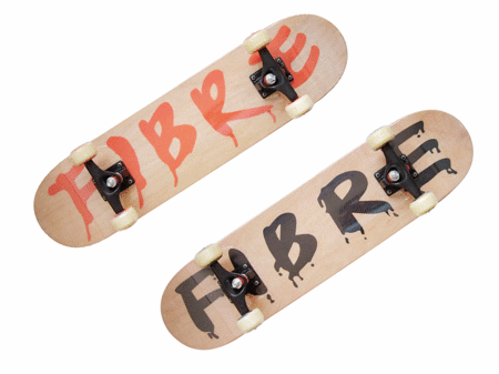- Верхняя часть: черное наждачное покрытие (Grip Tape) с логотипом FIBER